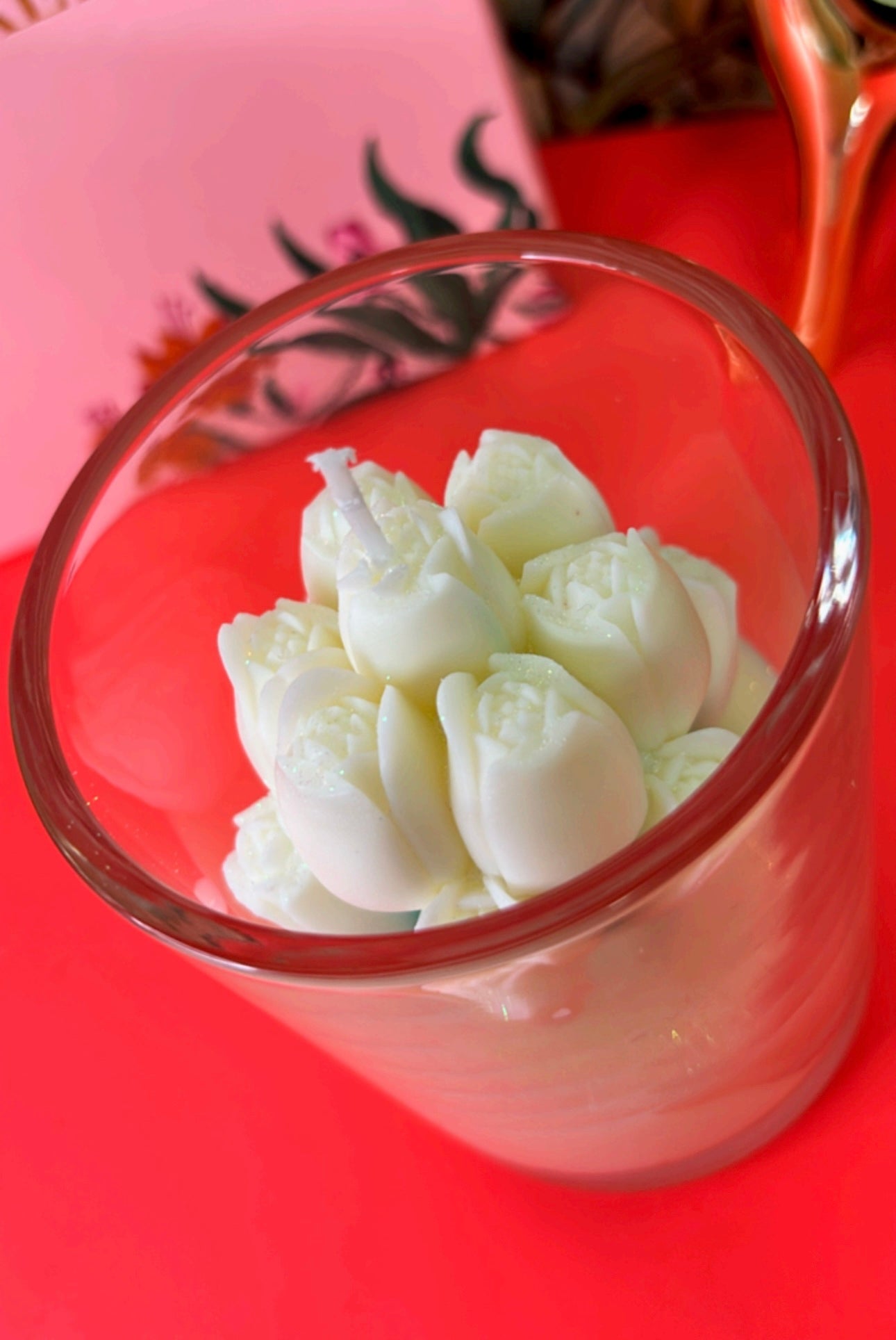Bringen Sie frischen Flair in Ihr Zuhause mit unserer liebevoll gestalteten Tulpenstrauß-Kerze. Diese farbenfrohe Kerze vereint Eleganz und Duft und schafft eine gemütliche Atmosphäre.